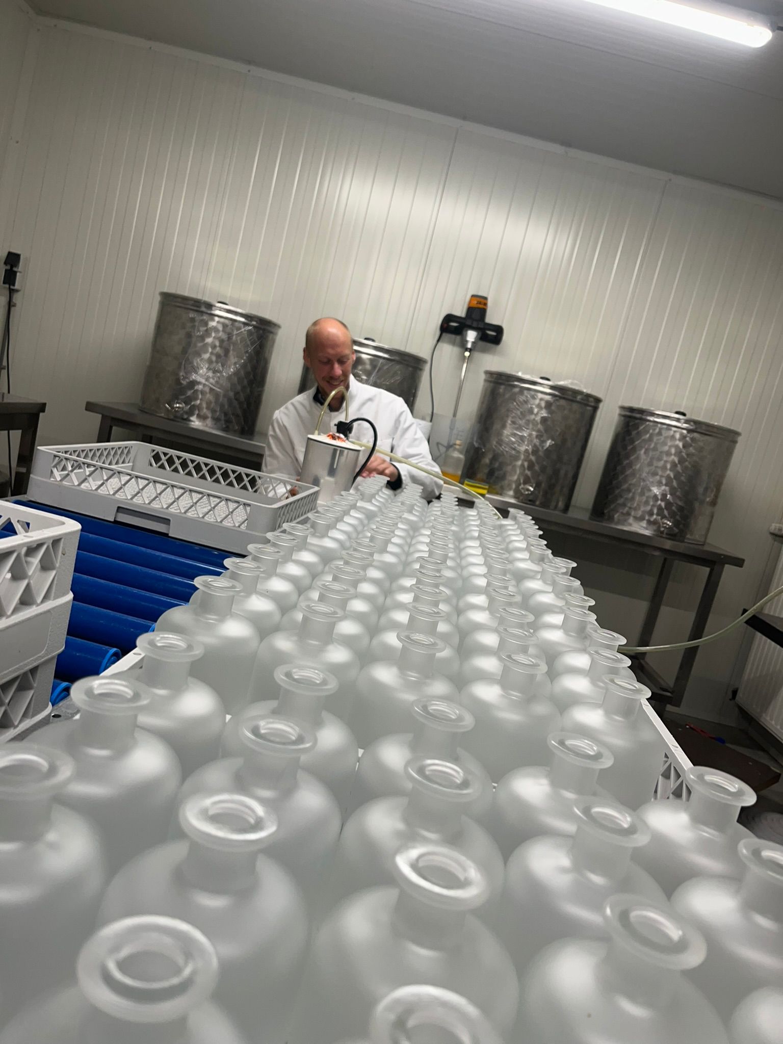Harm en Simon vonden hun ideale locatie in Gemert en lanceerden daar Château Gemerre, compleet met productieruimte en ontvangstruimte voor klanten. In 2022 gaven ze vol gas: samenwerkingen met groothandels begonnen en de productie steeg van drie naar zeven vaten per batch, goed voor 1.400 flessen. Handmatig etiketteren werd verleden tijd dankzij een halfautomatische machine, terwijl ze ook leerden omgaan met douane en accijnzen. Ondanks de groei voldeed dit in piekperiodes nog niet altijd, wat de behoefte aan verdere uitbreiding duidelijk maakte. Ze stonden voor een belangrijke keuze: zelf verder investeren of samenwerken met een expert om onbeperkt te kunnen doorgroeien.